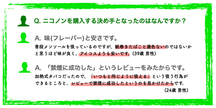 この動向は、やはり禁煙ニーズが高まっており加熱式タバコを利用している喫煙者の思考のトレンドとしてもうかがえます。